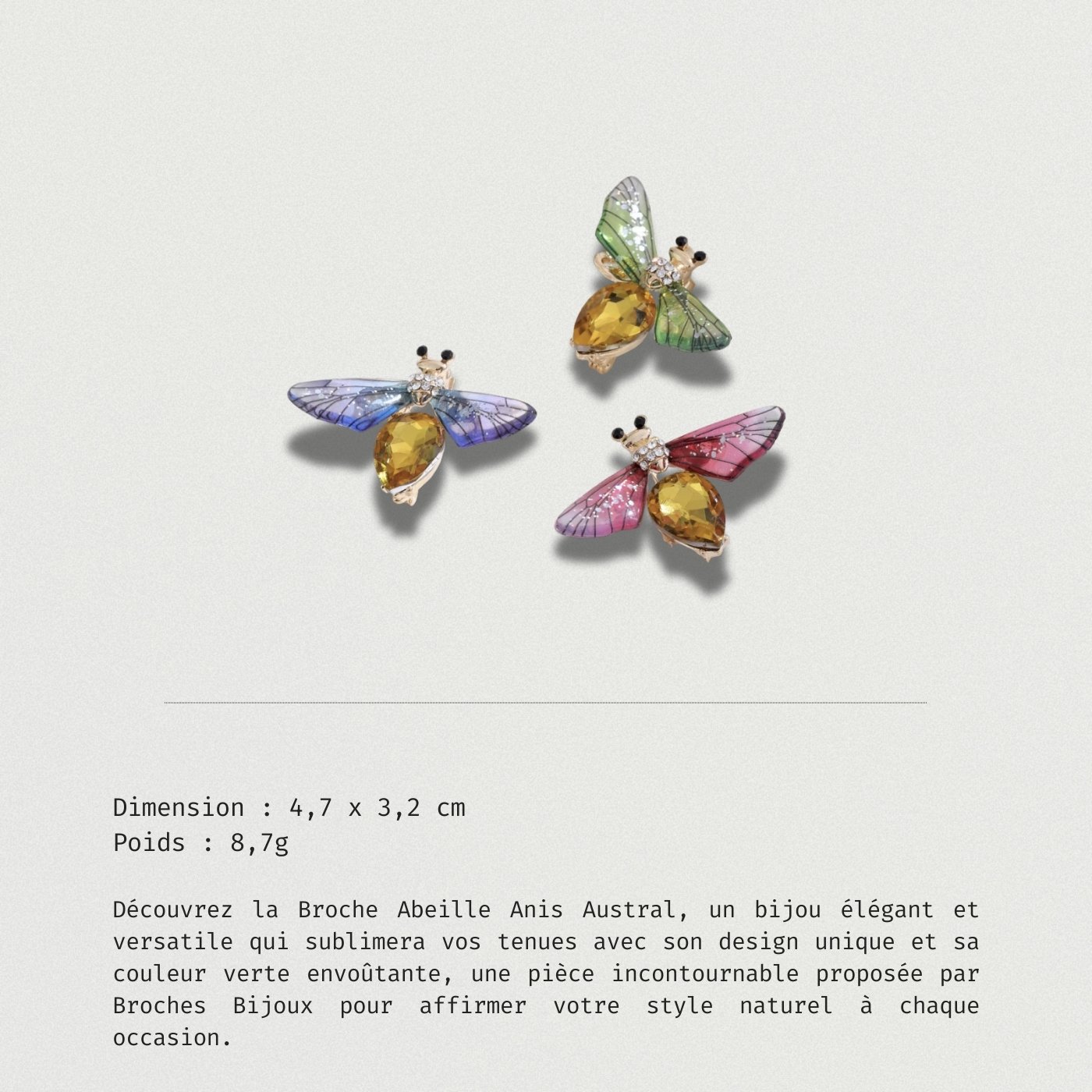Soyez le premier à laisser votre avis sur “Broche Abeille Anis Austral”