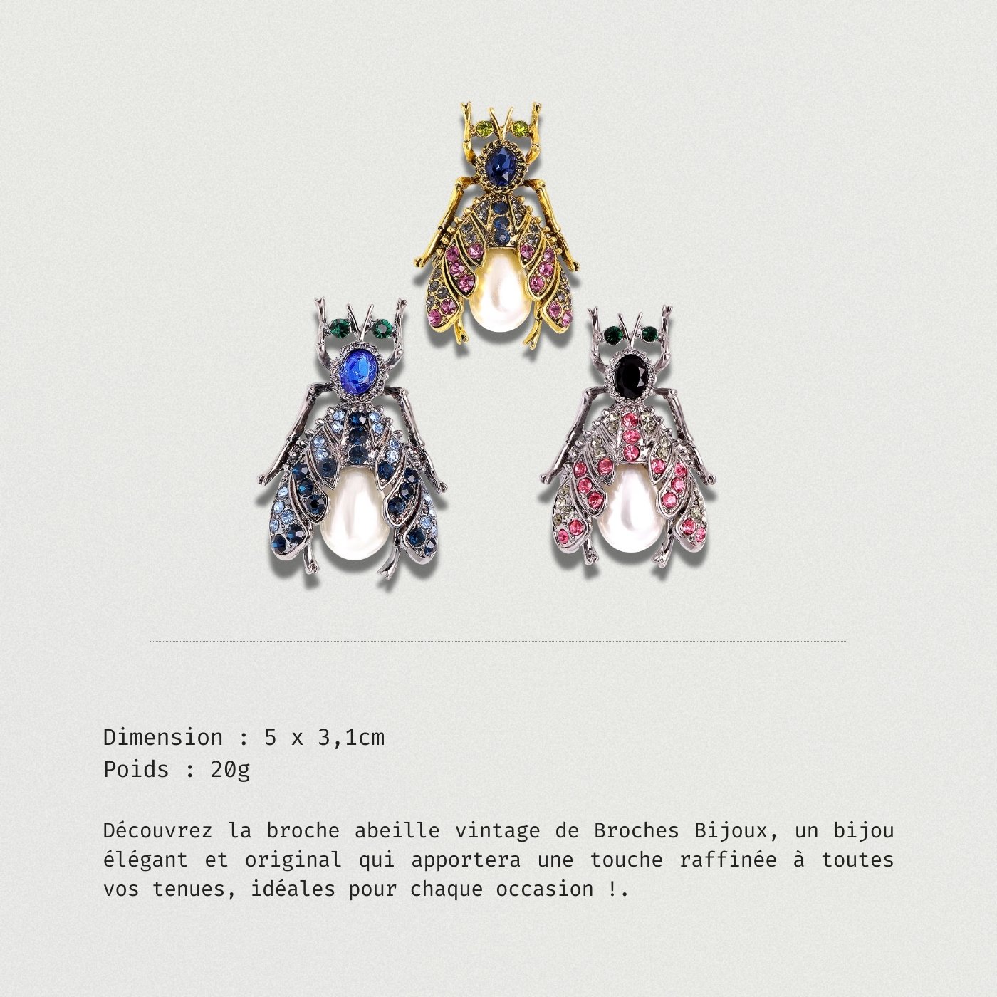 Découvrez Broche Abeille Vintage, un bijou au charme intemporel qui sublimera vos tenues. Avec son design unique, cette broche attire le regard et reflète votre personnalité. Que ce soit pour une sortie décontractée ou un dîner formel, ce bijou est parfait pour toutes les occasions.