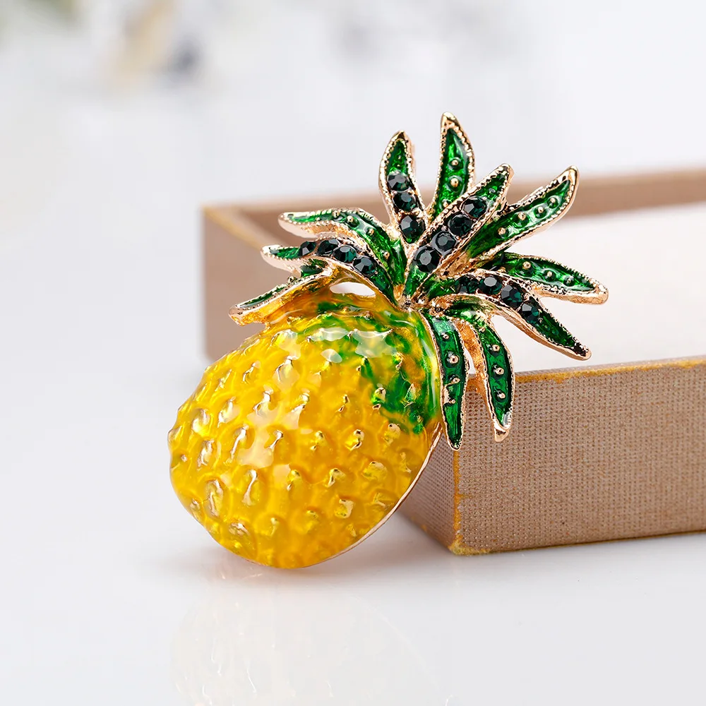 Élégante et contemporaine, cette broche en forme d’ananas se distingue par son design accrocheur.