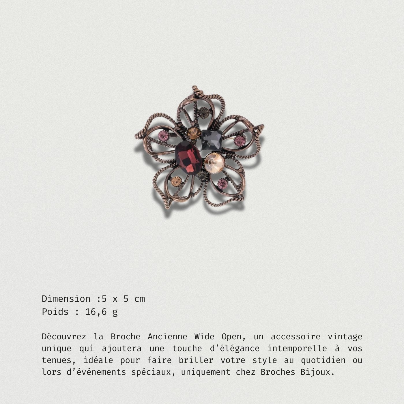 Ajoutez une touche d’élégance à votre style avec la Broche Ancienne Wide Open. Un bijou vintage qui attire les regards et sublime vos tenues.