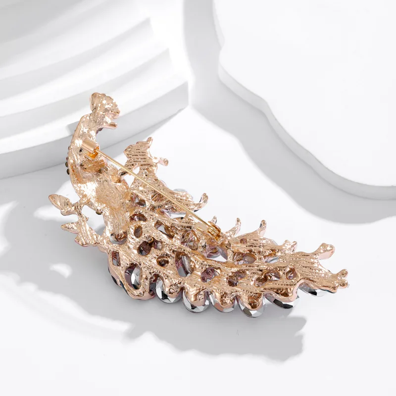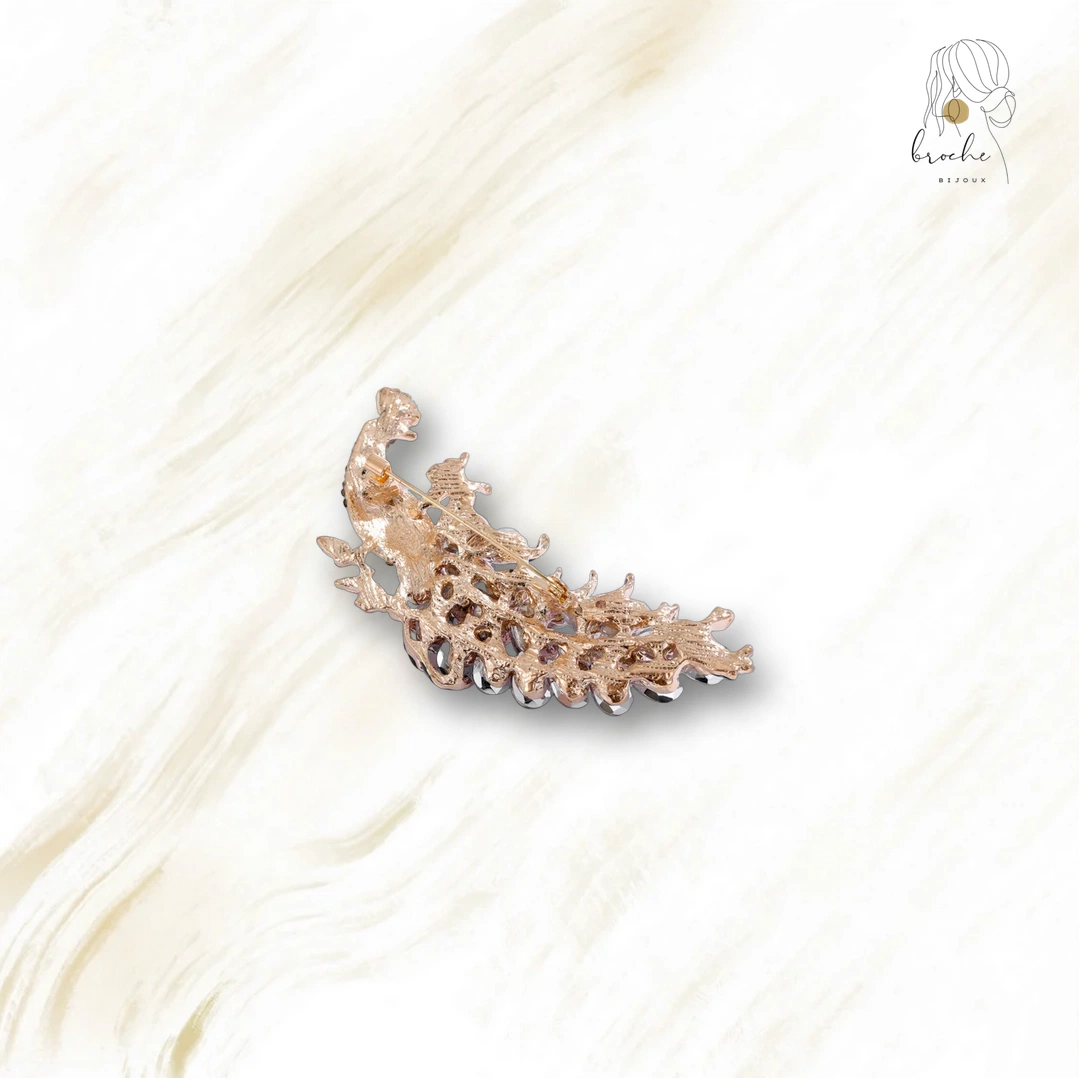 Cette broche arbore un motif de paon, symbole du style Art Nouveau, alliant beauté et originalité. Sa fabrication en alliage de zinc garantit un produit d’une esthétique durable.