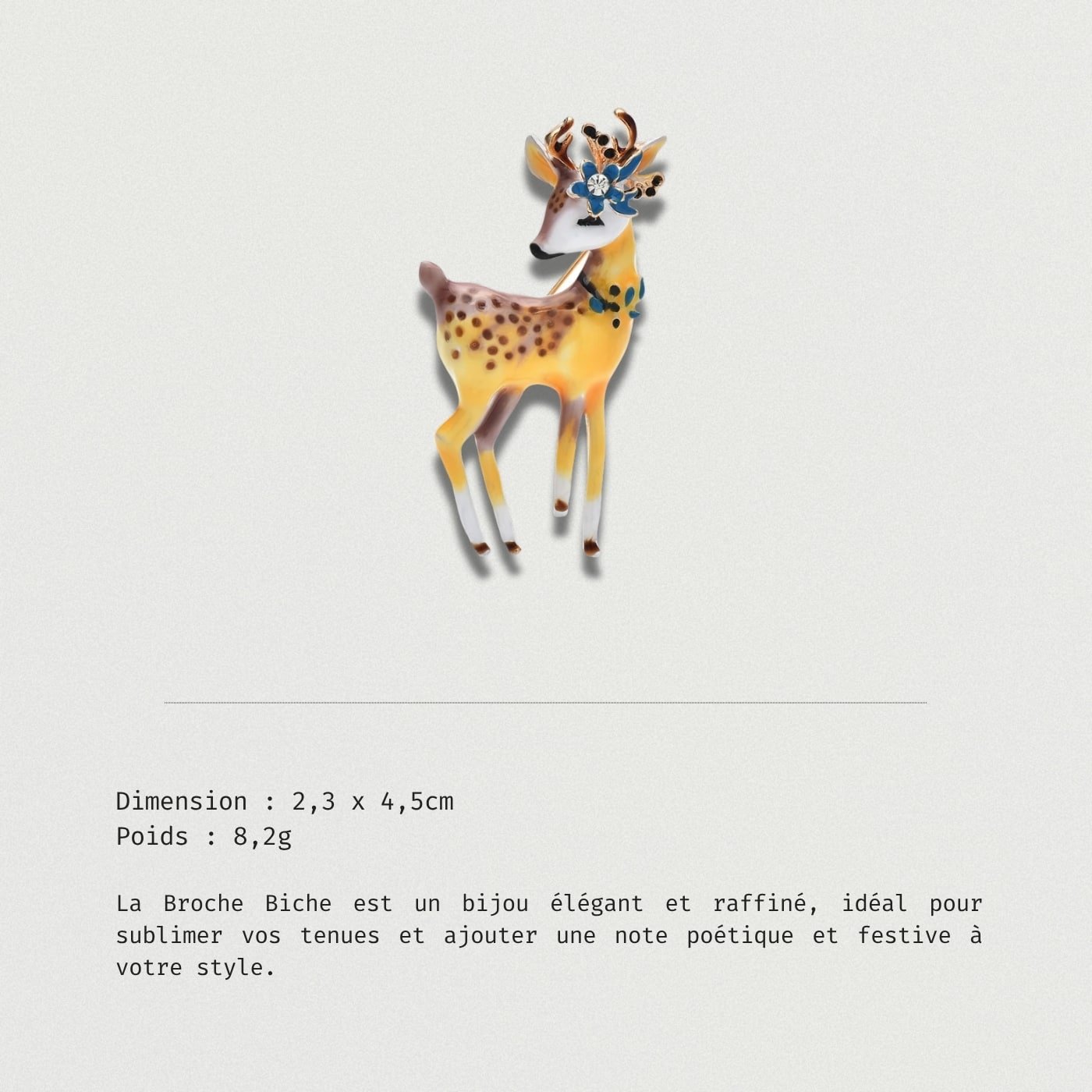 La Broche Biche est un bijou élégant et raffiné, idéal pour sublimer vos tenues et ajouter une note poétique et festive à votre style.