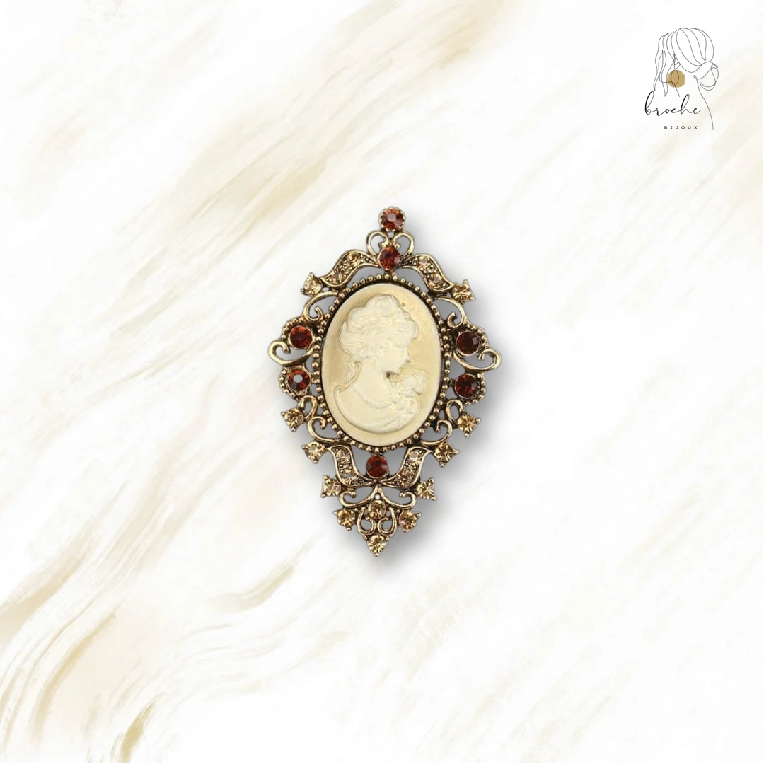 La Broche Camée Duchesse allie vintage et élégance, offrant un accessoire idéal pour rehausser toutes vos tenues.