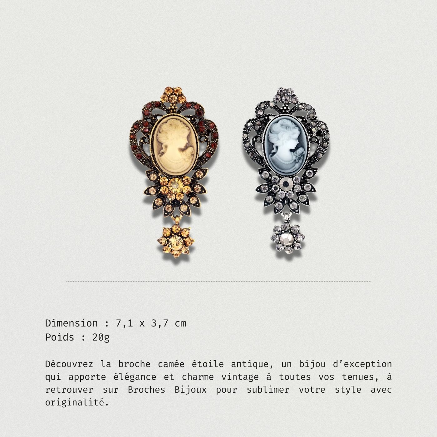 Découvrez Broche Camée Étoile Antique, l’accessoire parfait pour sublimer votre élégance. Avec son design vintage, cette broche ajoute une touche d’originalité à chaque tenue. Idéale pour toutes les occasions, elle est un must-have pour les amateurs de bijoux raffinés.