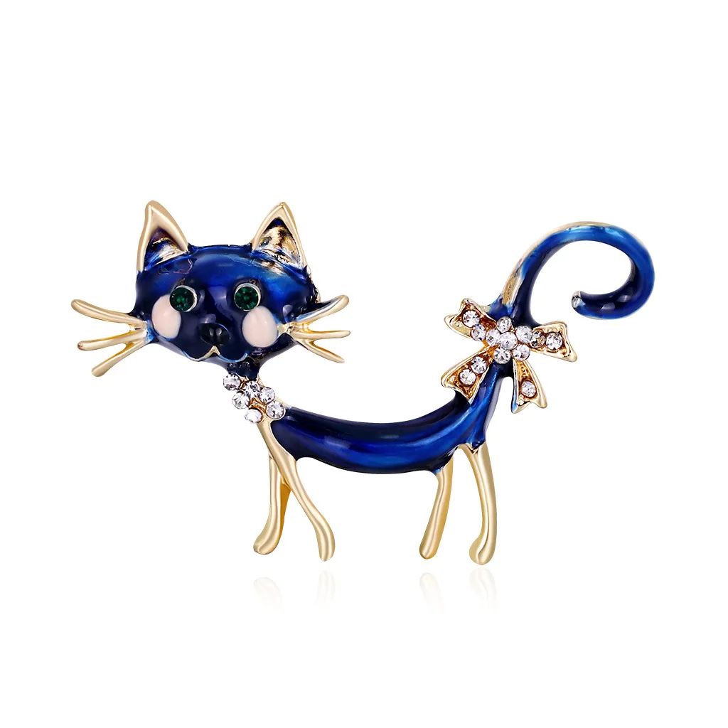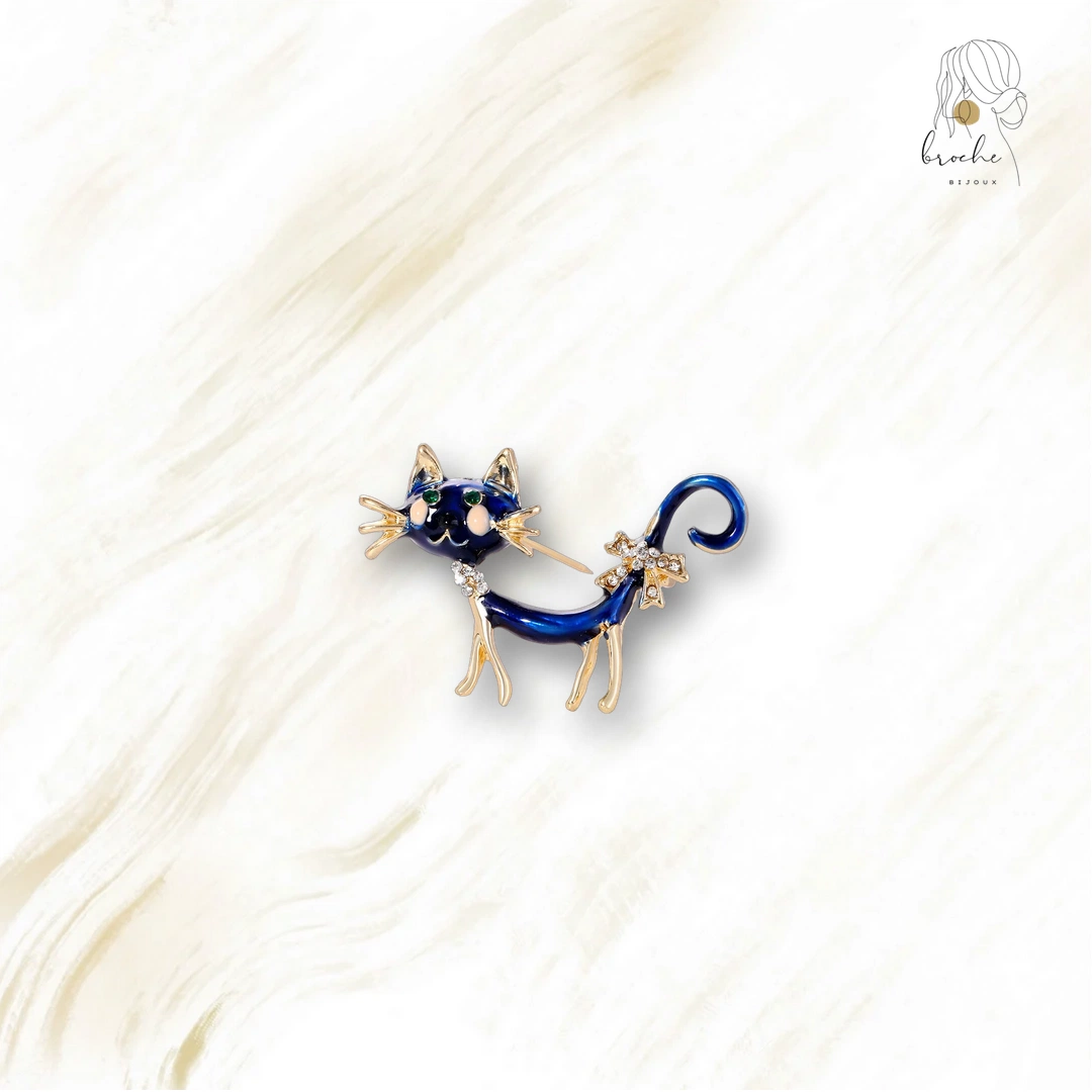 Broche Chat Bleu Doré : Un Accessoire Distinctif