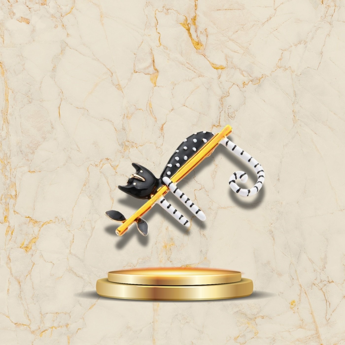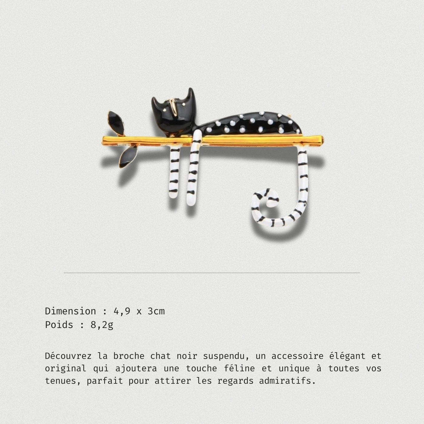 La broche chat noir suspendu est un accessoire félin qui se marie à merveille avec différents styles de vêtements. Que vous préfériez un look formel ou casual, cet article apportera une élégance indéniable à votre apparence.