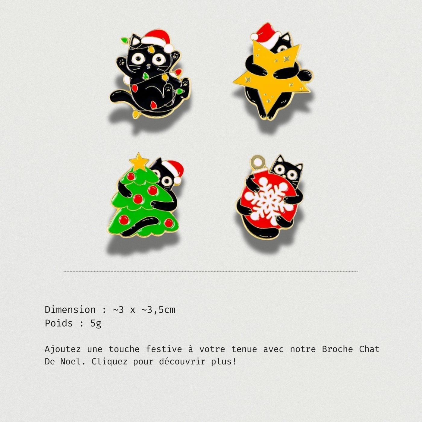 Ajoutez une touche festive à votre tenue avec notre Broche Chat De Noel. Cliquez pour découvrir plus!