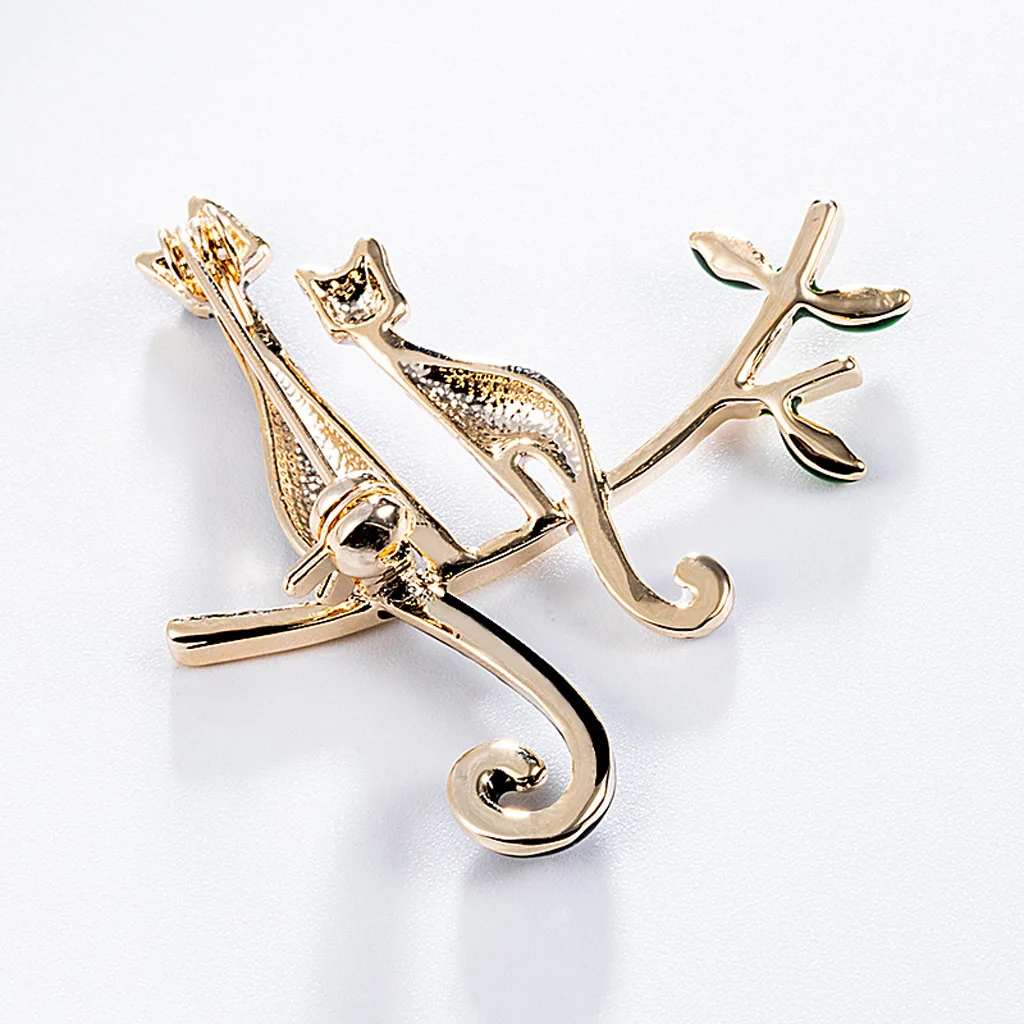 Accessoire broche chat doré pour vêtements