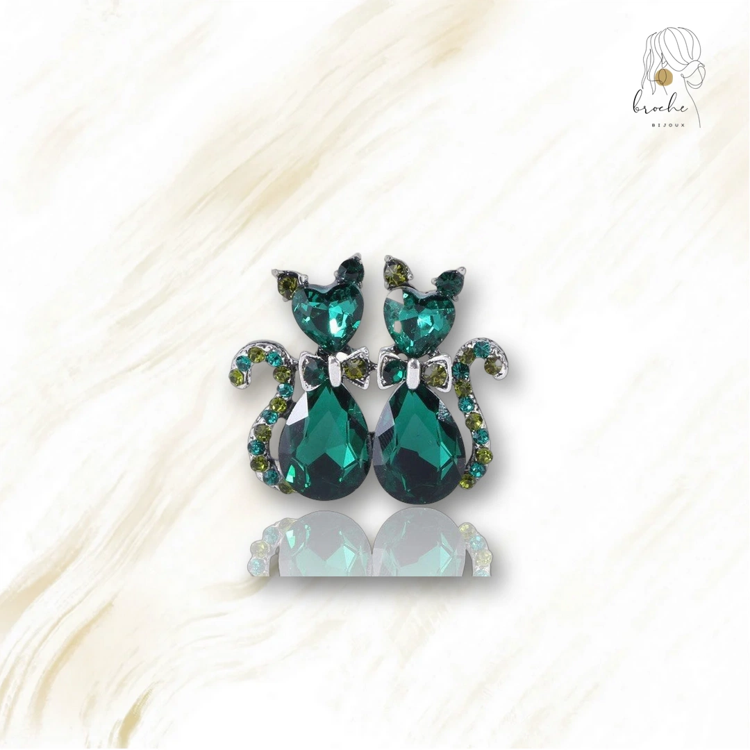 Broche Chat Duo Émeraude – Polyvalente pour Chaque Moment