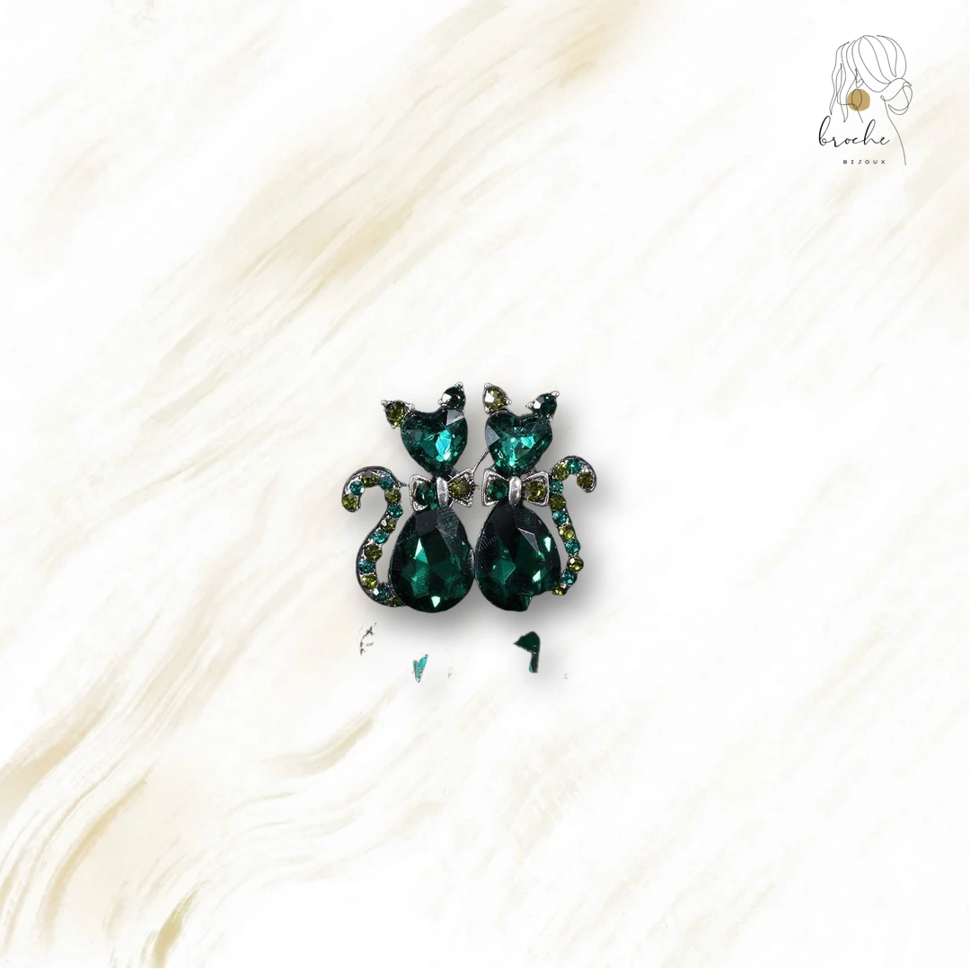 Broche Chat Duo Émeraude – Élégance et Charme