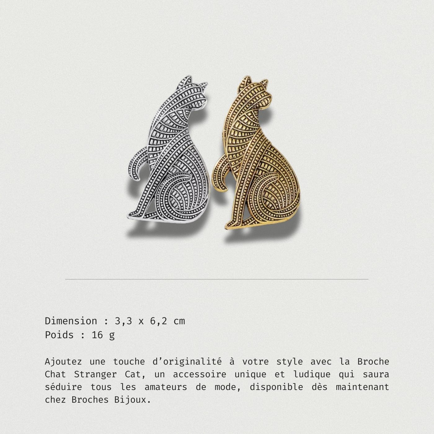 Le charme de la Broche Chat Stranger Cat