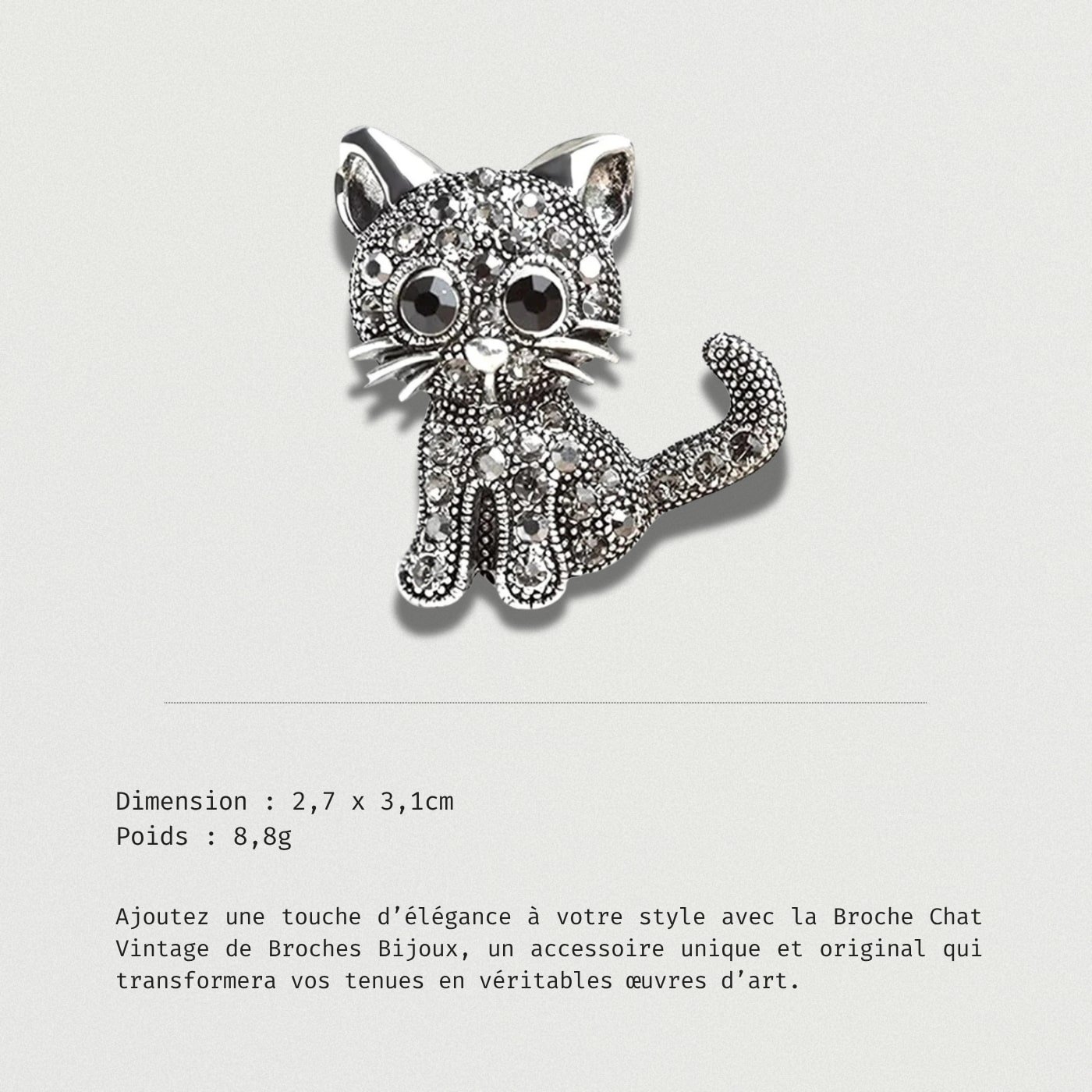 Ajoutez une touche d’élégance à votre style avec la Broche Chat Vintage de Broches Bijoux, un accessoire unique et original qui transformera vos tenues en véritables œuvres d’art.