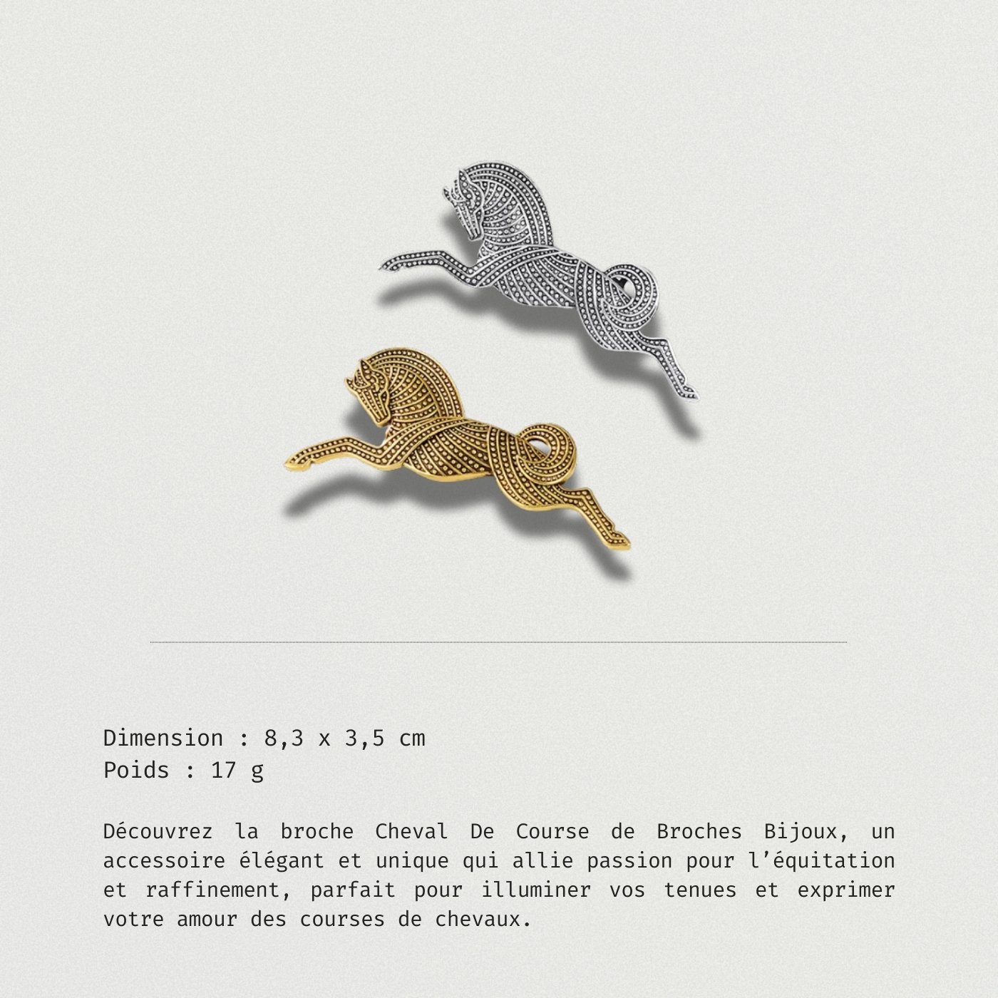 Ajoutez une touche d’élégance à votre style avec la broche cheval de course. Un bijou idéal pour les passionnés d’équitation.