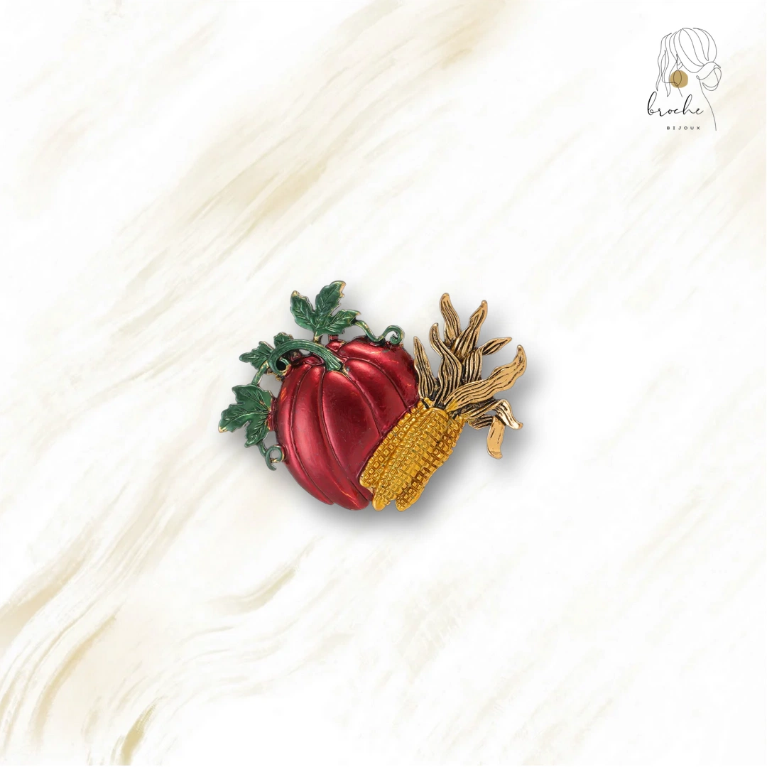 Cette broche se distingue par son design original en forme de citrouille et maïs, ajoutant une note de fantaisie à vos tenues. Sa finition élégante attire le regard et fait ressortir votre style personnel.