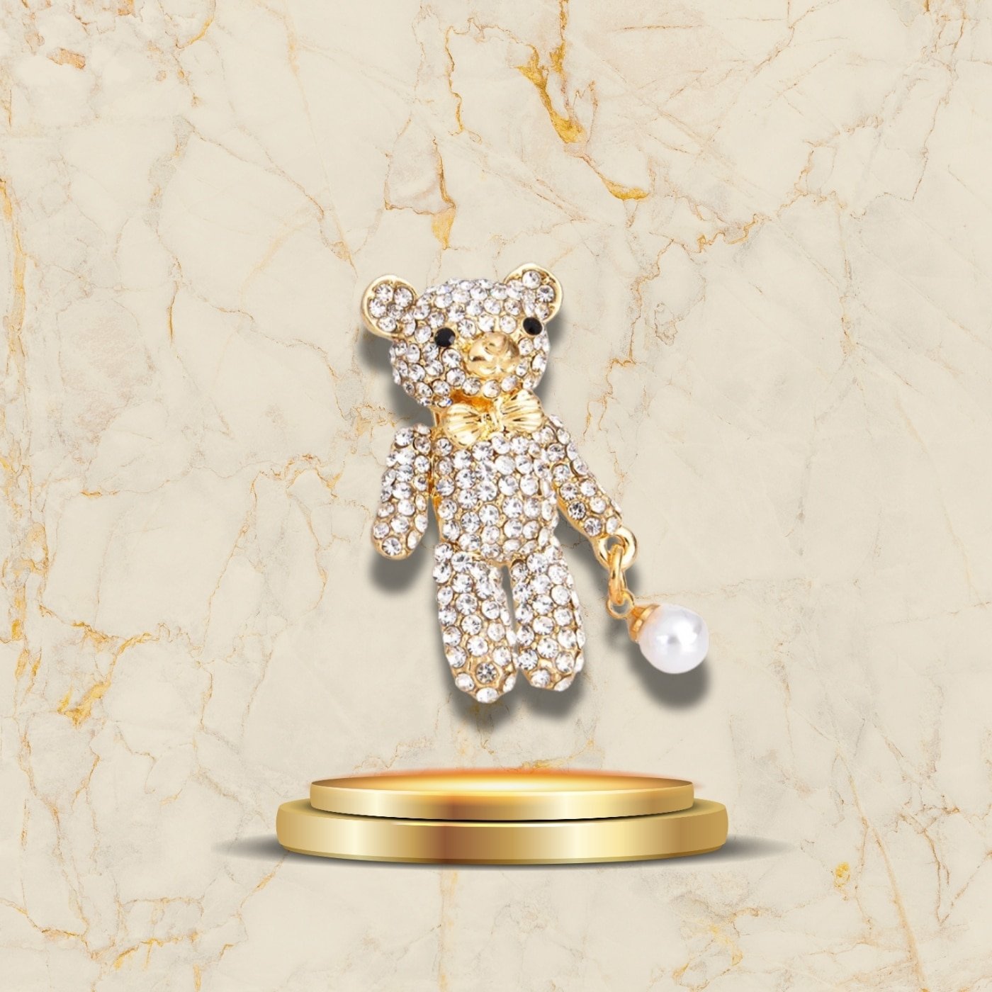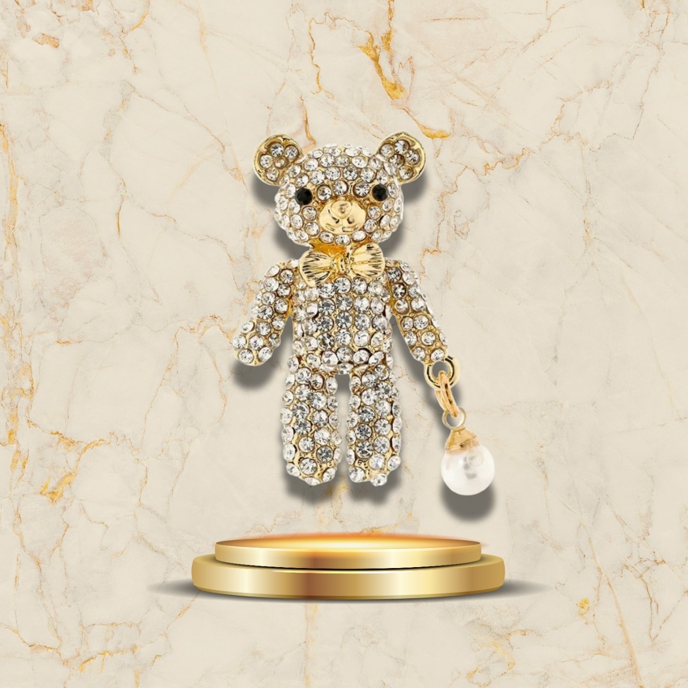 Représentant un ours raffiné orné de strass scintillants, avec un nœud papillon doré et une perle suspendue, cette broche festive illumine vos tenues avec une touche chic et tendance.