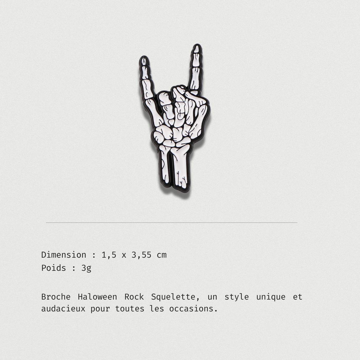 La Broche Halloween Rock Squelette est l’accessoire parfait pour affirmer votre style avec audace. Inspirée du geste rock emblématique, elle attire tous les regards et incarne une personnalité forte, idéale pour les amateurs de mode unique et originale.
