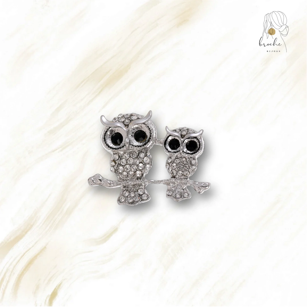 La Broche Hibou Duo Argenté est un accessoire au design élégant, parfait pour sublimer vos tenues et accessoires avec une touche de créativité.