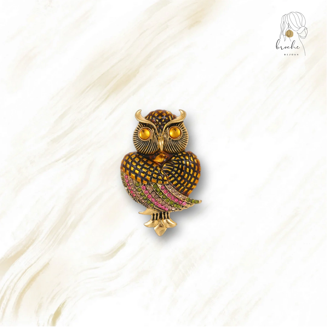 La Broche Hibou Royal allie design unique et élégance, idéale pour embellir vos tenues et accessoires au quotidien.