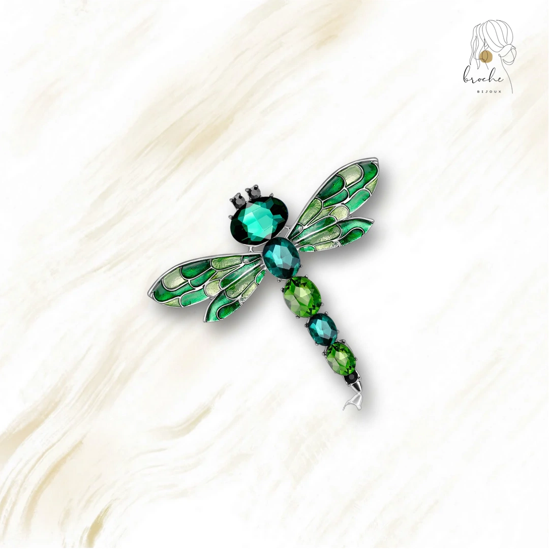 Cette broche se distingue par un design inspiré de la nature, évoquant la grâce des libellules. Sa finition raffinée en fait un choix séduisant pour toute occasion.