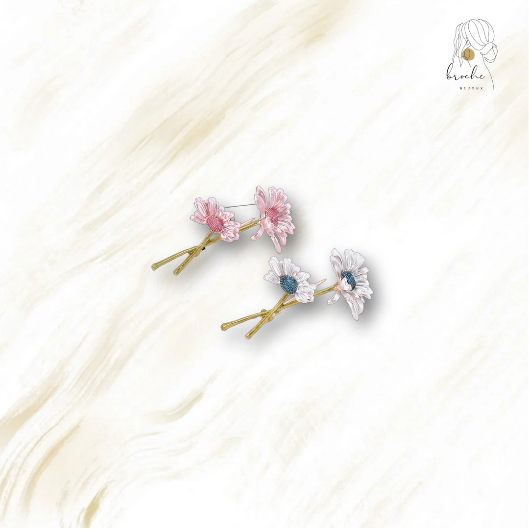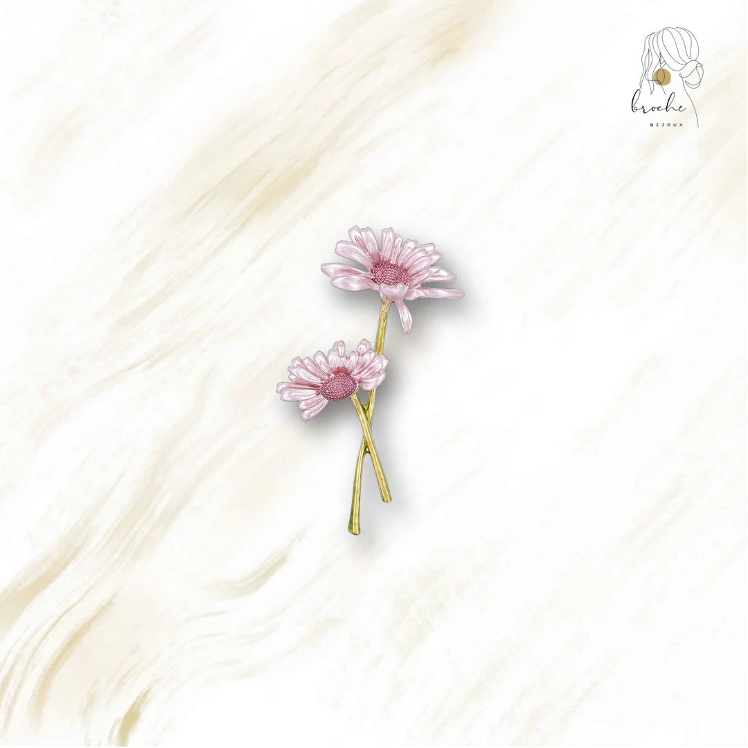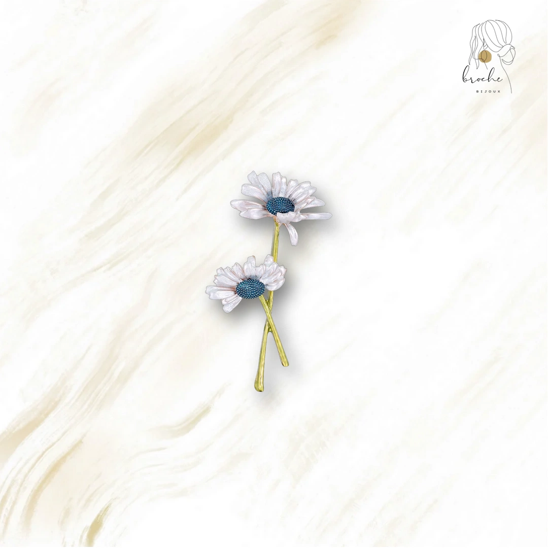 Apportez une touche florale à vos tenues avec la Broche Marguerites Jumelles, un accessoire élégant et polyvalent, parfait pour toutes les occasions.