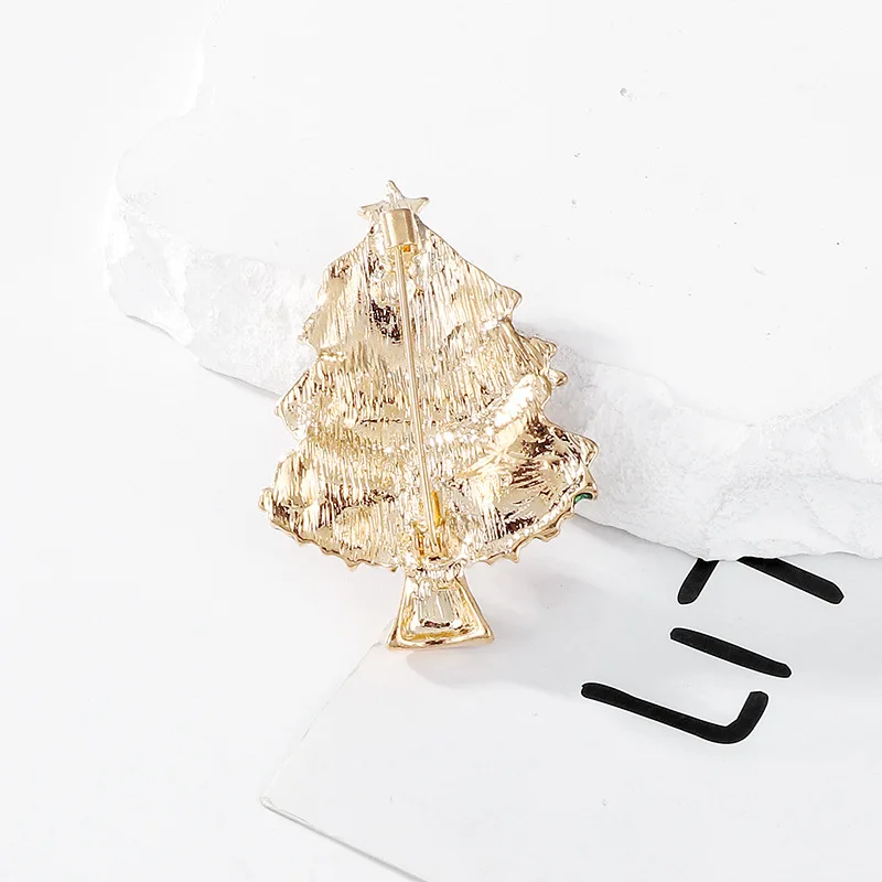 Cette broche présente un design raffiné en forme de sapin, orné de perles blanches. Elle ajoute une touche de chaleur à n’importe quelle tenue.