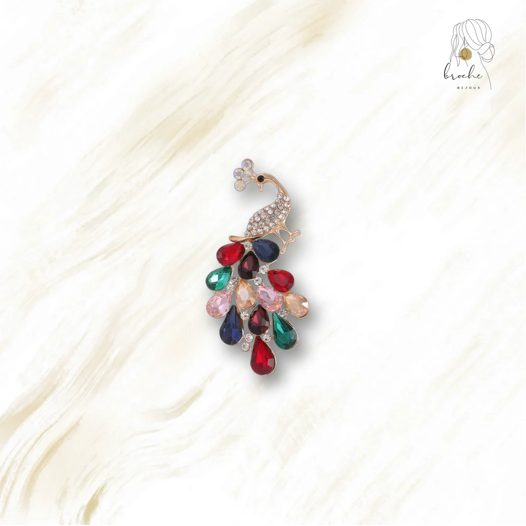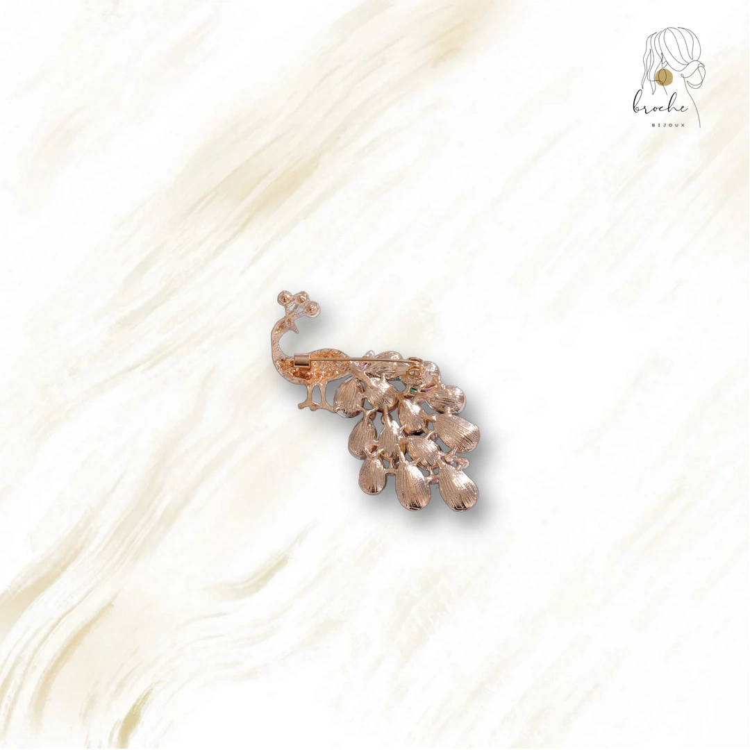 Cette broche, au design inspiré par la beauté du paon, présente des détails soignés et une finition raffinée. Elle apporte une touche d’élégance à chaque tenue.