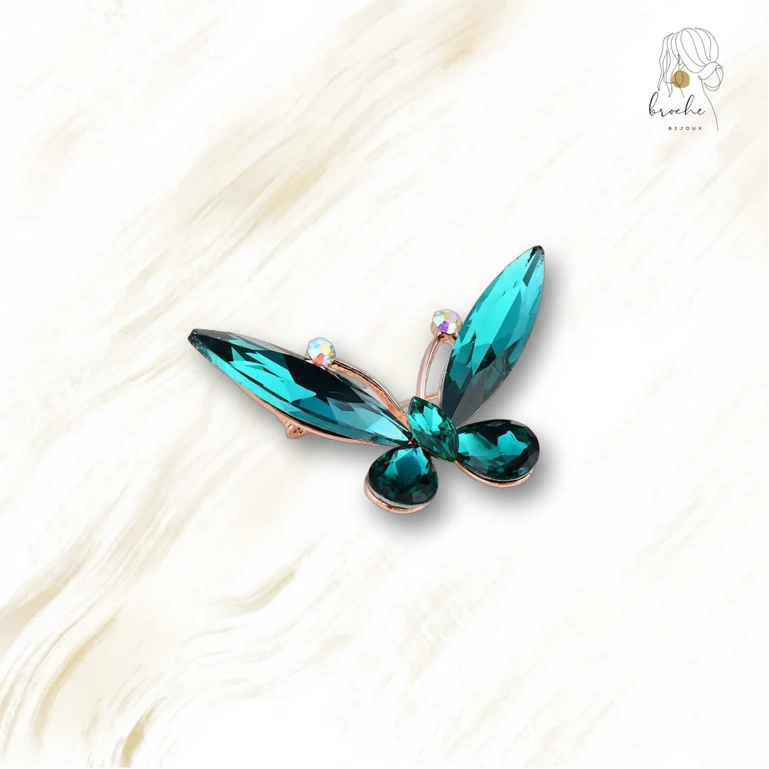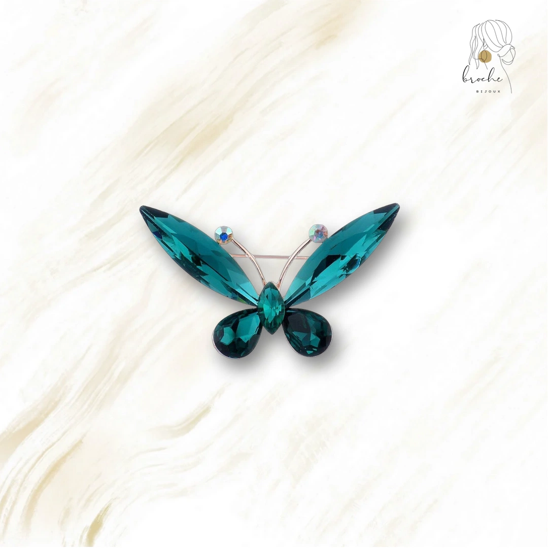 La Broche Papillon Brillance Émeraude se distingue par son design raffiné et sa couleur émeraude étincelante.