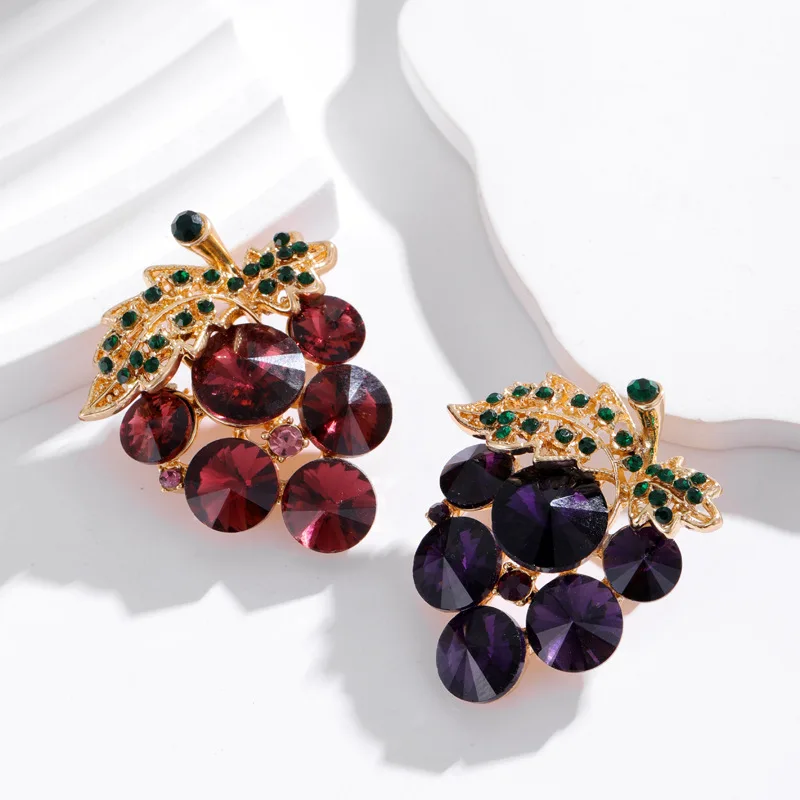 Cette broche se distingue par un design en forme de raisin qui offre une touche de brillance grâce à ses strass scintillants. Son allure chic en fait un complément parfait pour divers styles vestimentaires.