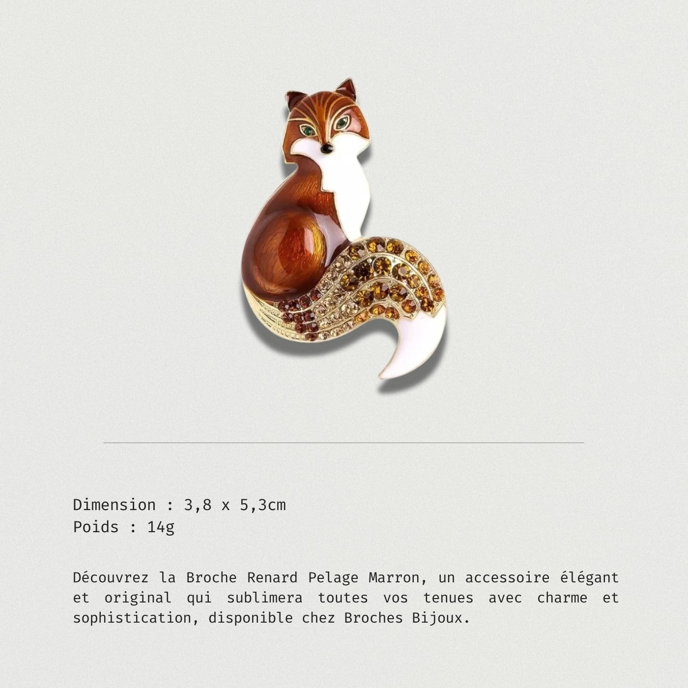 Découvrez la Broche Renard Pelage Marron, un accessoire élégant et original qui sublimera toutes vos tenues avec charme et sophistication, disponible chez Broches Bijoux.