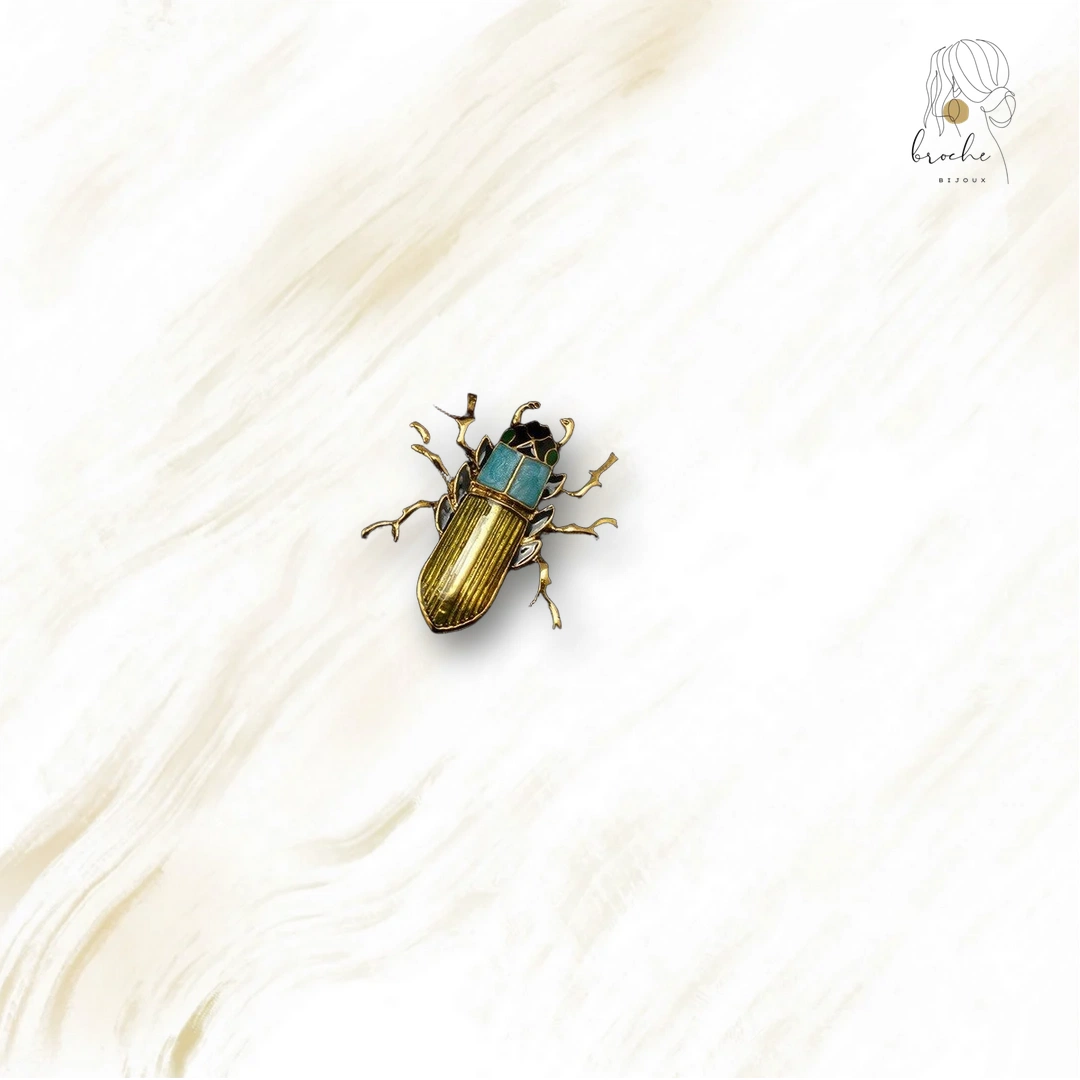 Broche Scarabée Doré Bleu – Polyvalente pour toutes les occasions