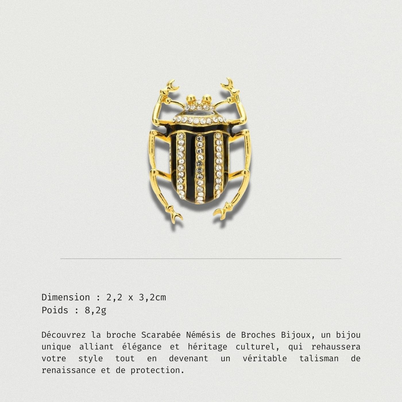 La Broche Scarabée Nemesis allie élégance et symbolisme. Ce bijou unique est parfait pour toute occasion, ajoutant une touche de sophistication à votre style.