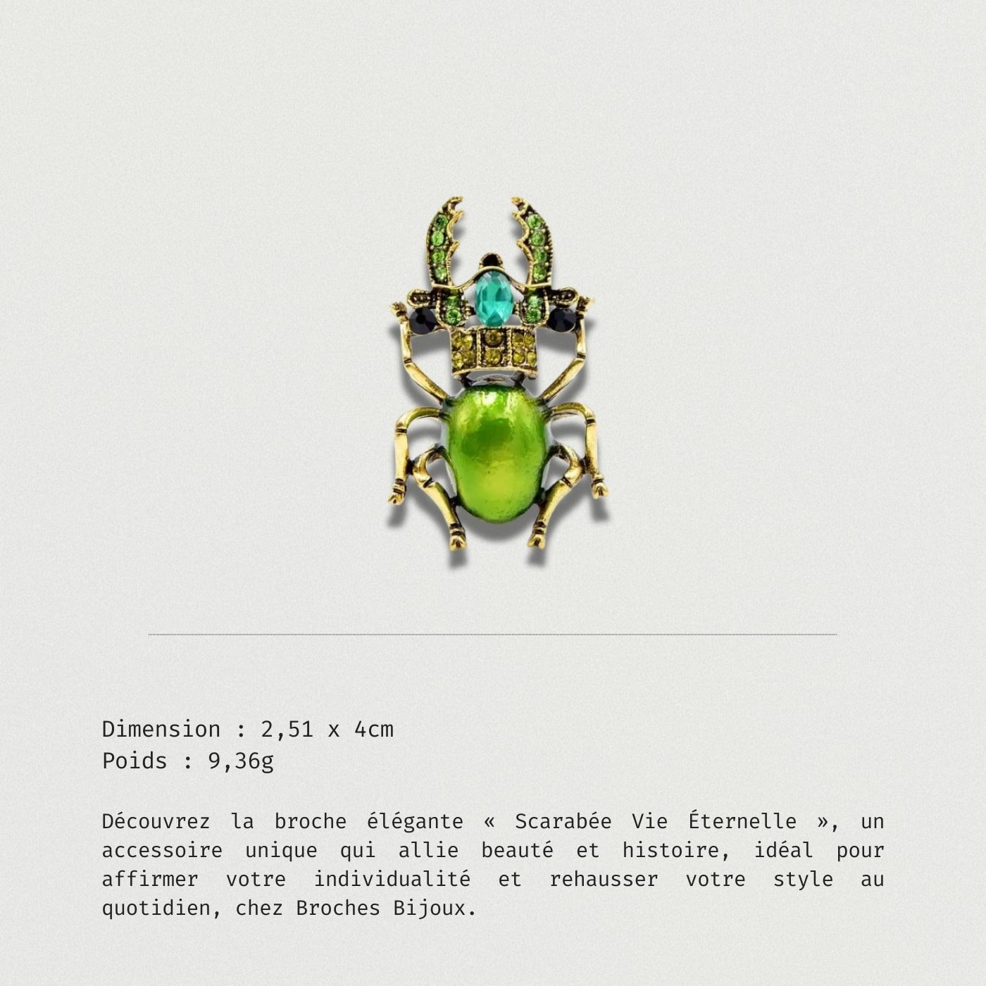 Découvrez la broche élégante « Scarabée Vie Éternelle », un accessoire unique qui allie beauté et histoire, idéal pour affirmer votre individualité et rehausser votre style au quotidien, exclusivement chez Broches Bijoux.