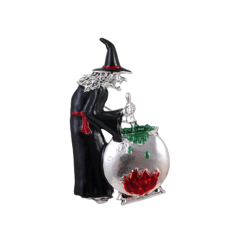 Accessoire de mode broche sorcière stylisée pour Halloween