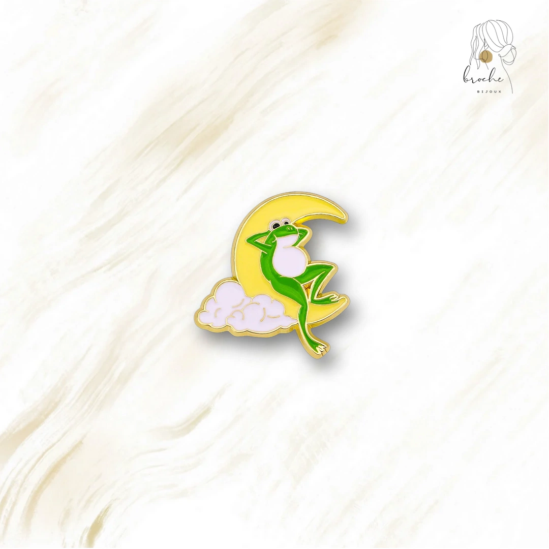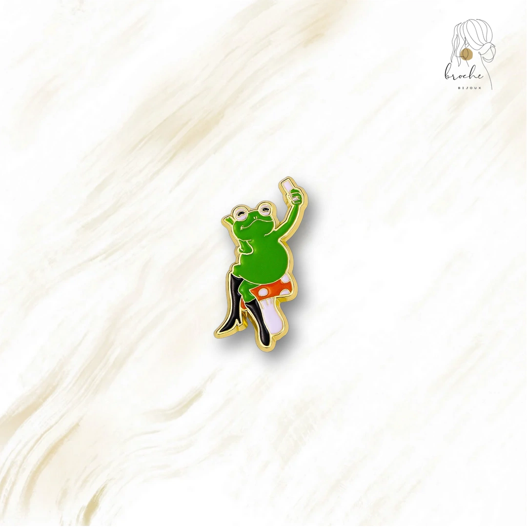 Ce pin’s arbore un design amusant et captivant qui met en valeur une grenouille stylisée, entourée d’une bordure dorée élégante. Sa présentation accrocheuse attire l’œil et complète parfaitement toute tenue.